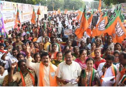 தமிழக அரசின் தொழிலாளர் நல வாரியங்களின் செயல்பாட்டை கண்டித்து, தமிழக பா.ஜ., அமைப்பு சாரா மக்கள் சேவை பிரிவு சார்பில், சென்னை வள்ளுவர் கோட்டம் அருகே, நேற்று மாலை கண்டன ஆர்ப்பாட்டம் நடந்தது.
