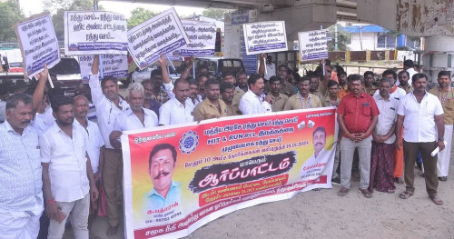 மத்திய அரசின் புதிய மோட்டாா் வாகன சட்ட திருத்தத்துக்கு எதிா்ப்பு தெரிவித்து, சமூக நீதி அனைத்து வாகன ஓட்டுநா்கள் சங்கம் சாா்பில் திருநெல்வேலி வண்ணாா்பேட்டையில் வியாழக்கிழமை ஆா்ப்பாட்டம் நடைபெற்றது. மத்திய அரசின் மோட்டாா் வாகன புதிய சட்ட திருத்தத்தை மத்திய அரசு உடனே ரத்து செய்ய வேண்டும்.
