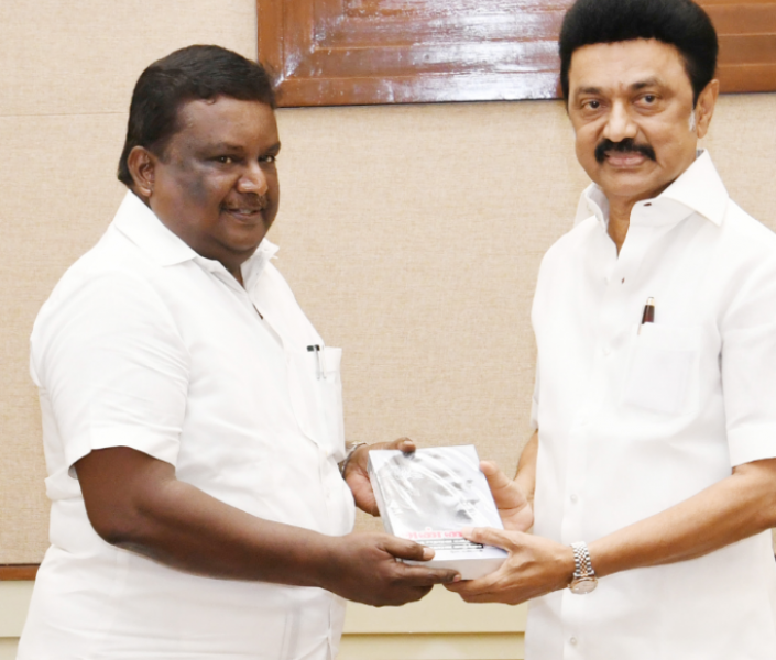 போக்குவரத்துத் துறை அமைச்சர் .எஸ்.எஸ். சிவசங்கர் அவர்கள் முதல்வர் மு.க ஸ்டாலினிடம் வாழ்த்து.