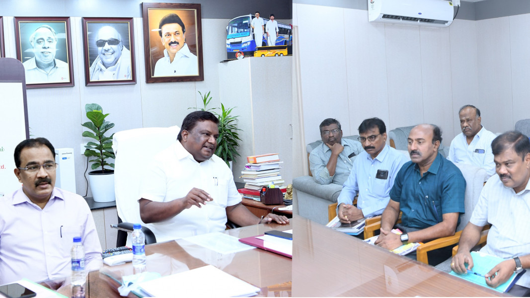 தலைமைச் செயலகத்தில் போக்குவரத்துத் துறை அமைச்சர் எஸ். எஸ். சிவசங்கர் தலைமையில் அனைத்து அரசு போக்குவரத்துக் கழகங்களின் செயல்பாடுகள் குறித்தும், நாளை நடைபெற உள்ள 14 ஆவது ஊதிய ஒப்பந்தப் பேச்சுவார்த்தை குறித்தும் ஆய்வுக் கூட்டம் நடைபெற்றது. உடன் போக்குவரத்துத் துறை அரசு முதன்மைச் செயலாளர் டாக்டர் கே. கோபால், இ.ஆ.ப., அனைத்து அரசு போக்குவரத்துக் கழகங்களின் மேலாண் இயக்குநர்கள் மற்றும் போக்குவரத்துத் துறை அலுவலர்கள் உள்ளனர்.