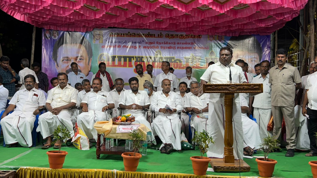 நேற்று(17-5-2022) மாலை 7.00 மணியளவில்,அரியலூர் மாவட்டம்,ஜெயங்கொண்டம் சட்டமன்ற தொகுதி, தா.பழூரில், மாவட்ட கழக செயலாளரும், தமிழ்நாடு அரசின் மாண்புமிகு போக்குவரத்துதுறை அமைச்சருமான எஸ்.எஸ்.சிவசங்கர் BE, MBA அவர்களின் தலைமையில், ஜெயங்கொண்டம் சட்டமன்ற உறுப்பினரும், தா.பழூர் ஒன்றிய கழக செயலாளருமான க.சொ.க.கண்ணன் அவர்களின் வரவேற்புரையில்,தமிழக முதல்வர் தளபதியார் அவர்களின் ஓராண்டு சாதனை விளக்க பொதுக்கூட்டம் நடைபெற்றது.இதில் தலைமை கழக பேச்சாளர்கள் தூத்துகுடி சரவெடி சரத்பாலா,போடி கலைச்செல்வன் ஆகியோர் சிறப்புரையாற்றினார்கள்.