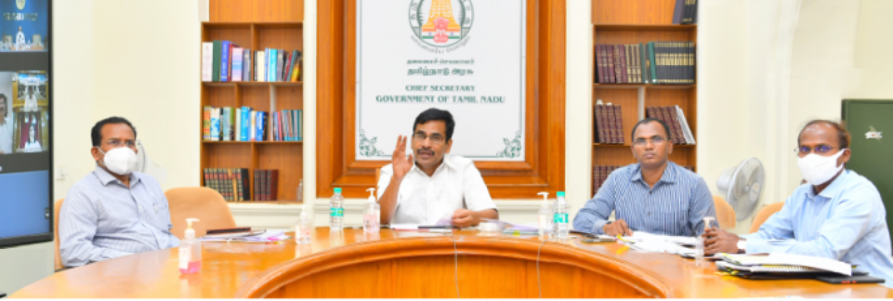 தலைமைச் செயலாளர் முனைவர் வெ. இறையன்பு, இ.ஆ.ப., டெல்டா மாவட்ட ஆட்சியர்களுடன் நெல் விதை இருப்பு, உர இருப்பு மற்றும் மாற்றுப் பயிர் சாகுபடி குறித்தும் காணொலி காட்சி வாயிலாக ஆய்வு