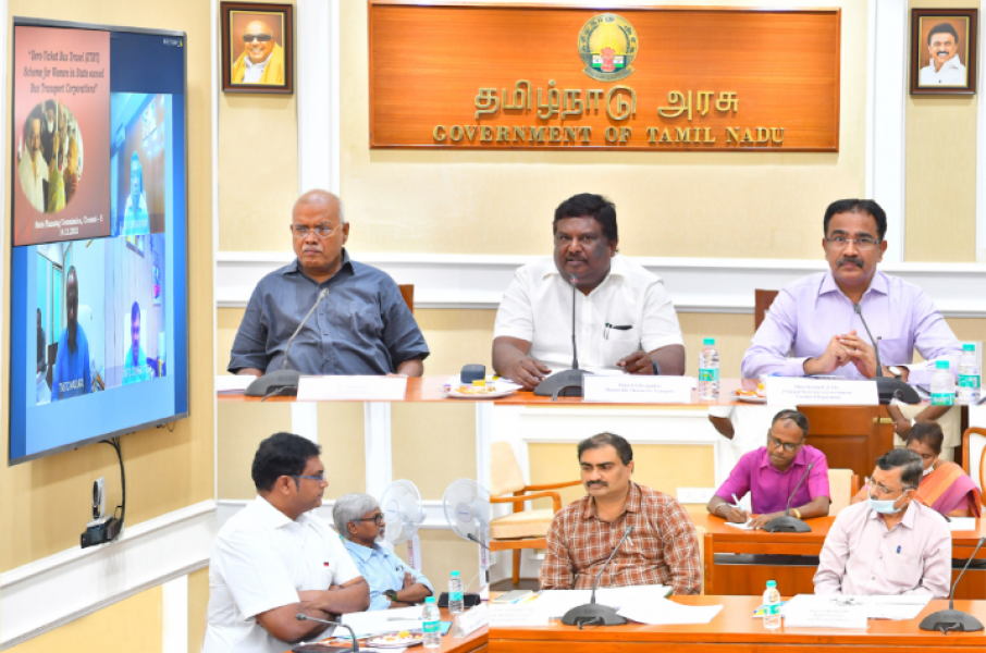 (14.11.2022) தலைமைச் செயலகத்தில், போக்குவரத்துத் துறை அமைச்சர் .எஸ்.எஸ். சிவசங்கர் அவர்கள், மாநிலத் திட்டக்குழு துணைத் தலைவர் பேராசிரியர் ஜெ.ஜெயரஞ்சன் ஆகியோர் தலைமையில், மாநிலத் திட்டக்குழு உறுப்பினர்கள், அரசு போக்குவரத்துக் கழகங்களின் மேலாண் இயக்குநர்களுடன், மகளிருக்கான கட்டணமில்லா நகரப்பேருந்து பயணத்திட்டம் தொடர்பான கலந்தாய்வு கூட்டம் நடைபெற்றது. உடன் மாநிலத் திட்டக்குழு உறுப்பினரும், சட்டமன்ற உறுப்பினர் முனைவர் டி.ஆர்.பி ராஜா, போக்குவரத்துத் துறை அரசு முதன்மைச் செயலாளர் டாக்டர் கே. கோபால், இ.ஆ.ப., போக்குவரத்துத் துறை அரசு சிறப்புச் செயலாளர் .தி.ந.வெங்கடேஷ், இ.ஆ.ப., மாநிலத் திட்டக்குழு செயலாளர் திரு.டி.எஸ்.ராஜசேகர், இ.ஆ.ப., மாநிலத் திட்டக்குழு கூடுதல் (முழு நேர) உறுப்பினர் பேராசிரியர் எம்.விஜயபாஸ்கர், போக்குவரத்து கழகங்களின் அலுவலர்கள் மற்றும் மாநிலத் திட்டக்குழு அலுவலர்கள் உள்ளனர்.