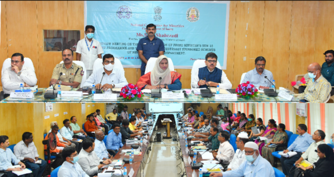 At Chennai Ezhilakam, under the leadership of Syed Sehshadi, Member of the National Commission for Minorities, Prime Minister's new 15-point plan and various State and Union Government funded schemes of the Minority Welfare Department A consultation meeting was held on the implementation. In this meeting, backward, most backward and Principal Secretary, Minorities Welfare Department Mangat Ram Sharma, E.P., Chennai Metropolitan Water Supply and Managing Director, Sewerage Board, IRA Kirlosh Kumar, I A.S., Backward, Most Backward and Special Secretary Minority Welfare Department V. Sampath, I A.S.., Director Minority Welfare Dr. C. Suresh Kumar, I A.S.. Managing Director, Tamil Nadu Urban Habitat Development Board Mr. Govinda Rao, I A.S., Rural Development and Panchayat Raj Department Joint Secretary. Chandra Shekhar Sagamuri, E.P., Member Secretary, Tamil Nadu Minorities Commission