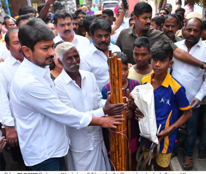 இளைஞர் நலன் மற்றும் விளையாட்டு மேம்பாட்டுத் துறை அமைச்சர் .உதயநிதி ஸ்டாலின் அவர்கள் (20.12.2022) சேப்பாக்கம்-திருவல்லிக்கேணி சட்டமன்றத் தொகுதியில் விளையாட்டு உபகரணங்கள், பொதுமக்களுக்கு மிக்ஸி, கிரைண்டர் மற்றும் எல்.பி.ஜி. எரிவாயு அடுப்பு உள்ளிட்ட பல்வேறு நலத்திட்ட உதவிகளை வழங்கினார்.