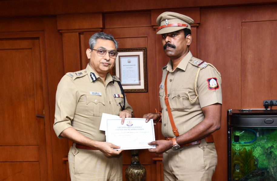 *Timely help by police officer saved a life Madhuravoyal police inspector sivananth was on patrol duty,and crossed the padi bridge sivananth saw an accident under the padi bridge. sivananth took the victim to the nearest hospital with the help of his driver constable dheeran Chakravarthi and reached the hospital on time..The victim's belongings were handovered to the concerned person, once the examination was done(2.73kg of gold was in the belongings of the victim).Chennai city police commisioner Shankarjiwal I.P.S awarded a certificate to sivananth madhuravoyal jurisdiction inspector and constable dheeran chakravarthi for honesty. and West zone joint commisioner Rajeshwari I.P.S North zone Addition commisioner Anbu I.P.S also congratulate sivananth for this phenomenol life saving action, especially getting awards and wishes from the higher officials makes policemen to be more keen and focus on their future endeavours.