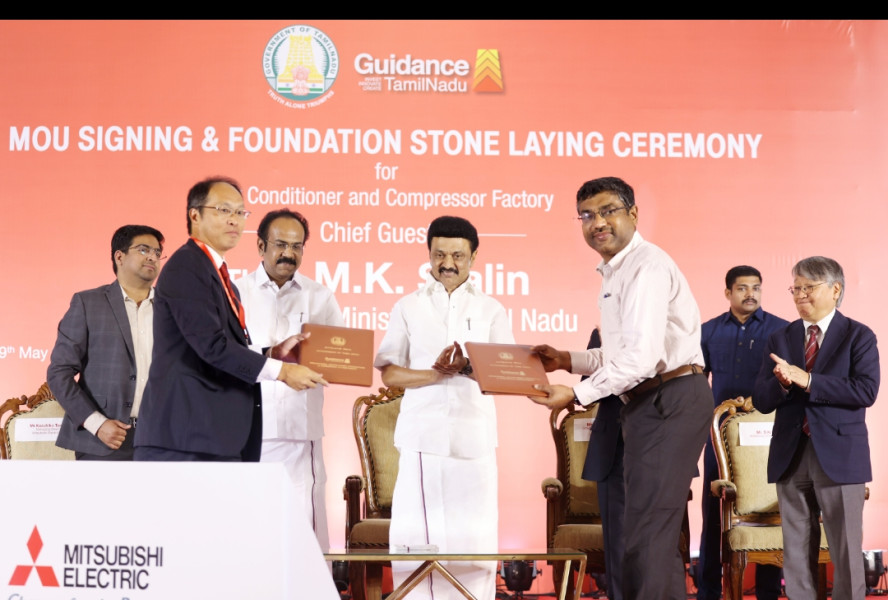 An MoU was signed between the Government of Tamil Nadu and Mitsubishi Electric India Pvt. Ltd. for the provision of a structured package of assistance for setting up a manufacturing plant for room air conditioners and compressors at an investment of Rs 1891 crore.