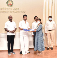 தமிழ்நாடு முதலமைச்சர் அவர்கள் (18.4.2023) தலைமைச் செயலகத்தில், 2022-23ஆம் ஆண்டிற்கான சிறந்த இளம் வடிவமைப்பாளர் விருதிற்கு தேர்வு செய்யப்பட்ட 3 வடிவமைப்பாளர்களுக்கு பரிசுத்தொகையாக 2....